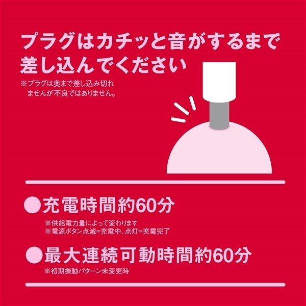 | 手のひらサイズで悶絶イキ快感!PPPより見た目の可愛いミニデンマが登場。 見た目を裏切る超ハイパワーで絶頂快感!肌ざわり滑らかで高品質のサラサラぷにっとヘッドが360度可動するのでぴったりフィットして感度UP!ボタンひとつの簡単操作で多彩な9パターン振動が楽しめる!こっそり遊べる静音設計。 防水機能:IPX6でお手入れ簡単。 充電時間約60分(供給電力量によって変わります)最大連続稼働時間約60分(初期振動パターン未変更時)、付属品:USBフォーンプラグ式充電ケーブル ※IPX6:放水ノズルを使って噴流水を最低3分間あてる試験(浸水は不可となります)●カラー:ピンク |