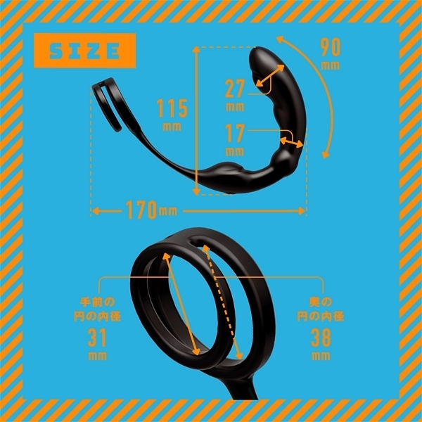 パッケージ:15.5×12.0×5.0cm 本体:最大径2.7cm・内径(3.1cm・3.8cm) 重量:74g 本体:USB充電式、リモコン:ボタン電池 |