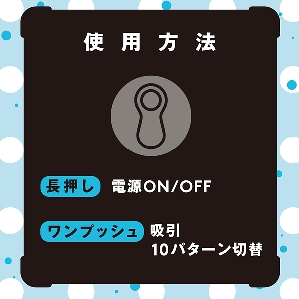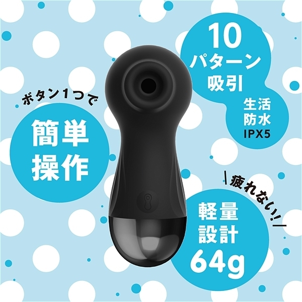 | 「はじめて」の人に選んでほしい。 コンパクトボディでもしっかりイケる、強力吸引10パターン。 手が疲れない軽量設計64g。 ボタン一つで簡単操作。 USBポートに差し込むだけのラクラク充電。 生活防水IPX5。 ●カラー:ピンク |