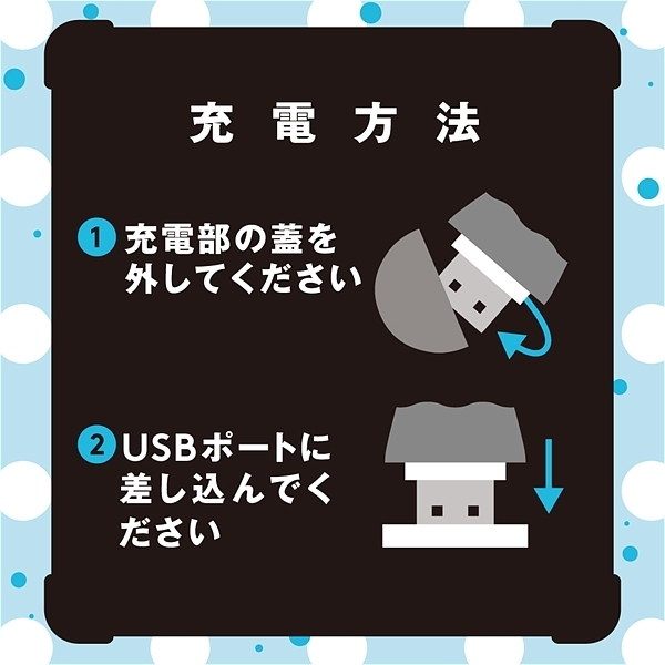 パッケージ:16.3×13.2×7.9cm 本体:19.9×3.8×4.8cm 重量:64g USB充電式 |