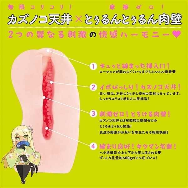 | 無限コリコリのカズノコ天井!摩擦ゼロのとぅるんとぅるん肉壁!2つの異なる刺激の快感ハーモニー!締まり良好なキツマン名器がヘラ状構造で上と下からチツ圧プレス!むぎゅーっと人肌感触のずっしり肉厚重量約600g!手になじむなめらか曲線ボディに、興奮度MAXのぷっくりワレメ!匠の造形技術による超リアルトルソー型ホール!耐久性抜群の高弾力もっちり快感!直接肌に触れるものだから、安全性と感触にこだわった高品質なエラストマーを使用しています。 パッケージイラスト:maruku |