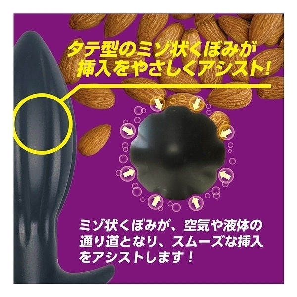 | アーモンドフォルム×ウォーターシリコン!形状と素材にこだわった、新感覚ア●ルプラグが新登場!アーモンドナッツのような形状は、先端部に向かってすぼんでいく流線フォルムとなり、スルッとした挿入感を生み出します。 さらに、中央部に配置された縦縞状のくぼみが、空気や液体の通り道となり、挿入心地をサポート。 最下部は返しの付いた錨モデルで、ヒップラインに沿ったデザインが違和感を低減させます。 本体素材には、最先端のウォーターシリコン素材を使用しました。 水のように柔らかい、と大評判の人気素材です。 すべすべな滑らかさ、もっちりとした肉感弾力、ゴムのように伸びる高伸縮性。 あなたにピッタリ寄り添う恍惚素材とスムーズなインサートとなる快感型状で、新しいア●ルプラグです。 「XL」は太さ68ミリのマキシマムモデル。 |