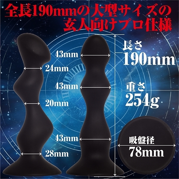 | 快感ボール内蔵の高品質シリコン製のアナルディルドの登場です。 全長190mmの大型サイズで玄人向けのプロ仕様です。 表面は高級シリコンのすべすべの肌触りで、内部には小刻みに動く「快感ボール」が3つ内蔵されており、運動時の小刻みな刺激で新感覚を味わえます。 3段階のふくらみが圧迫感をしっかりと演出。 圧倒的サイズ感で他の追随を許しません。 アナル開発!前立腺開発!ドライオーガズム!パートナーと!外出のお供に!などいろいろな使い方が出来ます。 特にお散歩は内部の快感ボールが振動し、新しい楽しみ方ができることでしょう。 表面の高品質シリコンはすべすべの肌触りで気持ちよさを感じる質感になってます。 強力吸盤の台座付きで床、壁などに貼り付けてハンズフリーで様々な楽しみを実現できます。 |