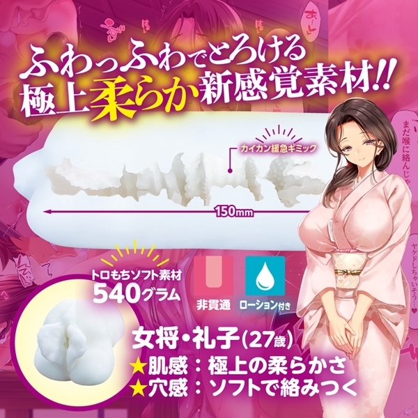 | FANZA同人で人気の作品「Go To コヅクリ〜おれが過疎化の進む田舎の村で適齢期の女たちへの種付をお願いされたワケ〜」とmousou-toysとのコラボ作品。 夫公認で、本物の肉棒を求めて淫らな本性をさらけ出す若女将「礼子」。 重量約540グラム、全長約180mmと肉厚たっぷりの柔らかハンドホールです。 ふわっふわでとろける真っ白な極上柔らか素材が優しく包み込みます。 入り口付近の巨大俵イボの先に進むと四方から突起イボが更に刺激!緩急のある引っ掛かりゾーンの先にあるフィニッシュゾーンではイボ壁と長い突起が蠢くように刺激!業界最上位クラスの柔らかさなのでまったりと楽しめます。 更に捻ったり回転させたりしながらストロークをする事によりより高刺激を楽しむ事が出来ます! |