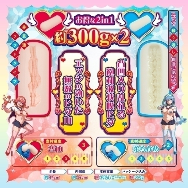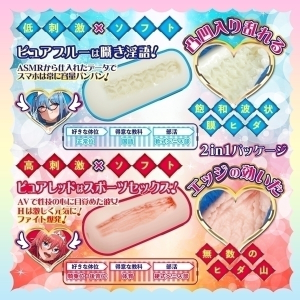 | 個性的な設計が特徴の非貫通型ホール2本セットです♪ピュアブルーとピュアレッドの2種類がセットになっており、異なる感触を楽しめます!ピュアブルーは柔らかめの弾力で、波状ヒダと突起が絡み合う構造♪じっくりとリラックスした時間を過ごしたい方におすすめです!一方、ピュアレッドは縦ヒダ構造で高刺激を提供し、アクティブな使用感を求める方に適しています!どちらも柔らかめの素材で心地よい使用感を実現しています♪COOLP初の1箱2本入りパッケージで、シーンに応じて使い分けることが可能です!ユニークな設計で、自宅でのリラックスタイムに彩りを添える特別なアイテムです♪ |