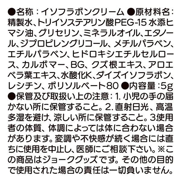 | やさしく塗り込むことで繊細な部位のケアをサポートする女性用クリームです♪大豆イソフラボンやアロエエキス、ハーブ成分を配合し、しっとりとなめらかな質感が特長です!適量を手に取り、乳首まわりにやさしくなじませるだけの簡単ケア♪肌にやさしい処方で、デリケートな部位にも安心して使用できます!持ち運びしやすいサイズ感で、旅行先やリラックスタイムにもおすすめです♪使用の際は必ず相手の同意を得た上でご利用ください!ローション付きで使いやすさも◎♪日本製ならではのこだわりが詰まった、ジョークグッズとしても楽しめるアイテムです!日々のボディケアのひとつとして、おだやかな時間を演出します♪ |
