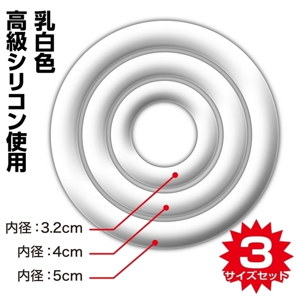 | デキる男の変身アイテム!高級シリコン製コックリング3サイズセット「パワーリングDX」。 ●サイズの異なるリング×3個セット●内径:5cm(大)・4cm(中)・3.2cm(小)●乳白色の高品質シリコン素材を使用●伸縮自在で肌触りも良く装着感抜群。 お肌に優しい自然な感触!サイズやお好みに応じて3サイズを使い分けられる高品質シリコン製のペニスリング3個セット。 カリ首や根元などお好きな部位に装着することで、様々な刺激を楽しめる男性用補助グッズです。 |