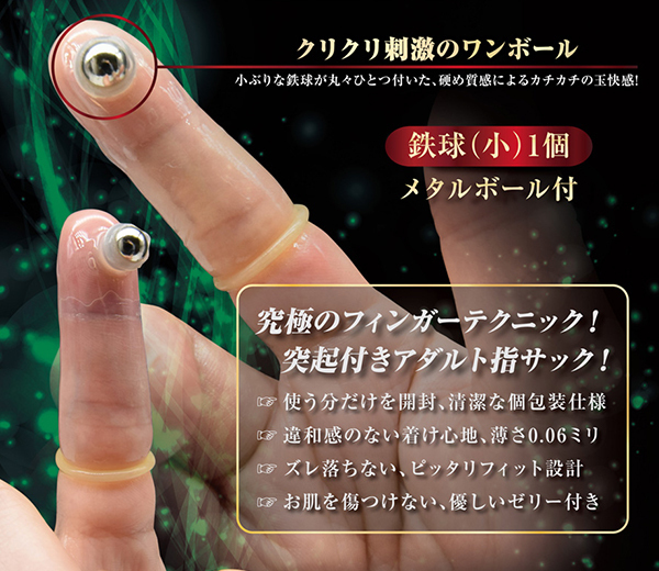 | 普通の指挿入だけでは物足りない!そういうときに役立つのが「フィンガースキンDX (G−6)」。 コリコリとした刺激が味わえるメタルボールが指先についたラブグッズ版の指サック!コリコリ、トントンとこれまでの指挿入では味わえない刺激が楽しめるほか、Gスポットやアナルに挿入して前立腺を刺激するなど男女兼用でお楽しみ頂けます♪鉄球はしっかり台座に固定されているので簡単に外れるような心配は不要!使うことで心地良い異物感が味わえるので細めのローターやディルドに被せて使うのも◎。 表面にはゼリーが塗布されていて挿入しやすく衛生的♪気持ちいいところをピンポイントで刺激するのに最適です! |