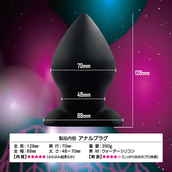 | あのエイナスストッパーから、ビギナーからマニアまで楽しめるアナルストッパーが最新素材になって新登場!こちらの「エイナスストッパー WSウォーターシリコン (04)」は細めの先端から急激に太くなる桃型形状の太さが自慢の逸品。 素材に使われているウォーターシリコンは通常のシリコンと比較してもマイルドな挿れ心地♪従来のノーマルシリコンだと痛みを感じる方や粘膜が弱めの方でもスムーズにお使いいただけます。 握るとむにゅっと潰れる感触が優しく気持ちいい♪いつもよりワンサイズ上のプラグを入れて開発したいという用途にもぴったりです。 サイズ感は太さ4.8〜7センチ!ボリュームたっぷりのしっかり太めで、プロフェショナルな快感を味わいたいときにぜひどうぞ。 |