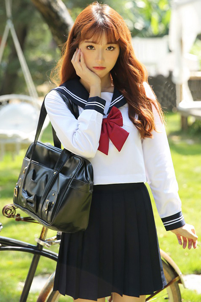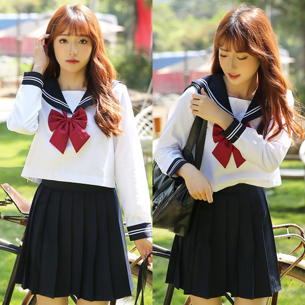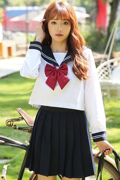 トップページ > コスプレ衣装 > セーラー服・制服 > <malymoon>紺×白色の赤リボン長袖セーラー服