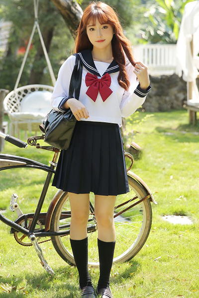 <malymoon>紺×白色の赤リボン長袖セーラー服